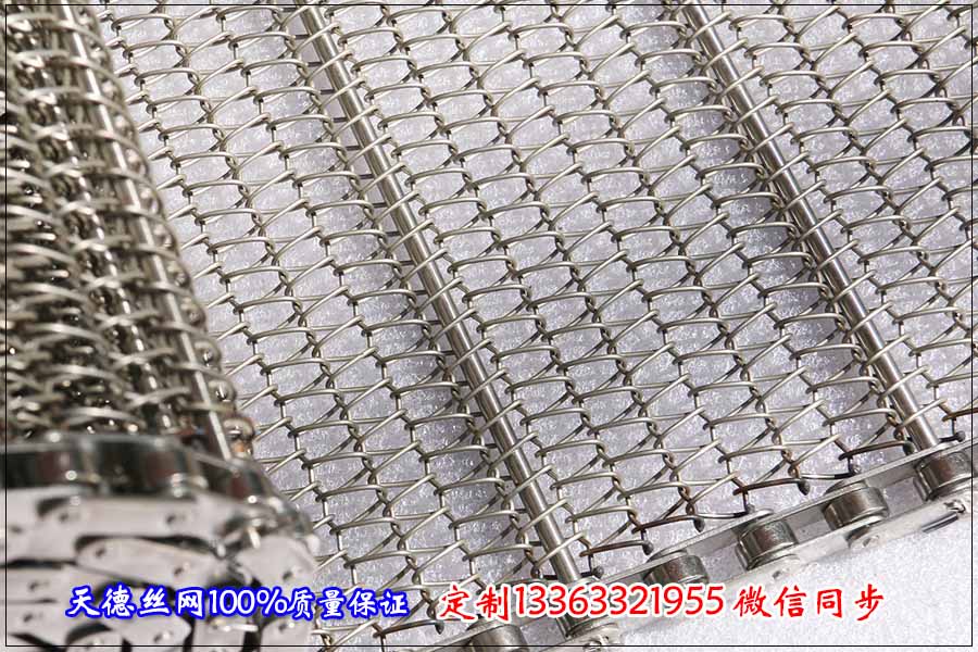 其中這臺鋼絲編織網(wǎng)帶輸送機(jī)的相關(guān)規(guī)格是這樣的:應(yīng)客戶的需要網(wǎng)帶輸送機(jī)的總寬度為500毫米,總高度為500毫米,也就是半米高的高度,長度為7米,輸送為平面輸送。由于輸送的是魚丸,我們采用鋼絲編織型的不銹鋼輸送帶比較合適,此形式的網(wǎng)帶成本較低,使用時間長。魚丸速凍輸送網(wǎng)帶的總寬為400毫米,輸送帶的寬度一定要小于輸送機(jī)的總寬度,輸送帶的總長度為14米,因為輸送機(jī)的長度為7米,不銹鋼輸送帶需要轉(zhuǎn)一圈的,輸送網(wǎng)帶的絲徑為1.2毫米,編織成型的輸送帶的孔為15*20毫米,只要魚丸不會漏下去就可以,根據(jù)輸送的需要網(wǎng)帶的兩側(cè)安裝高5公分的擋板,擋板的厚度為1.2毫米,作用是為了防止魚丸在輸送的過程中會漏下去。
