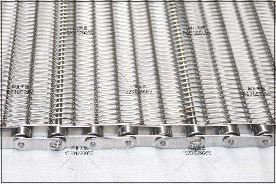 分段式普通型輸送網帶:此不銹鋼輸送帶的織造是由一段左螺旋和一段右螺旋替換織造而成,一般銜接是由直串條與曲折串條加工的。 食品工業的烘干,洗刷,以及機械零件的清潔,枯燥,降溫,輕載物體的運送,可做基本的鏈式傳動。