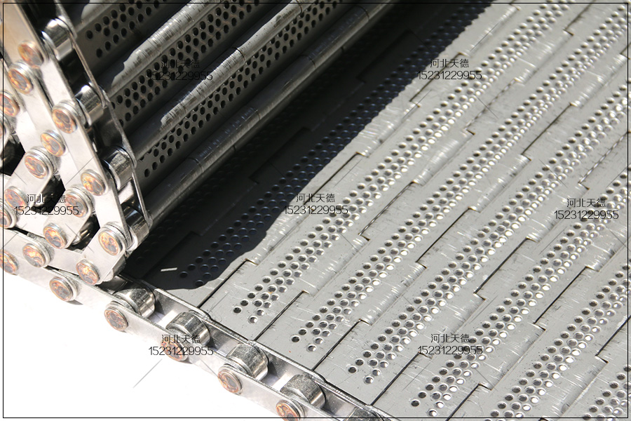這款鏈板輸送帶采用不銹鋼304鋼板折彎沖孔完成的,所有尺寸都是根據(jù)客戶的的要求來(lái)生產(chǎn)加工的。