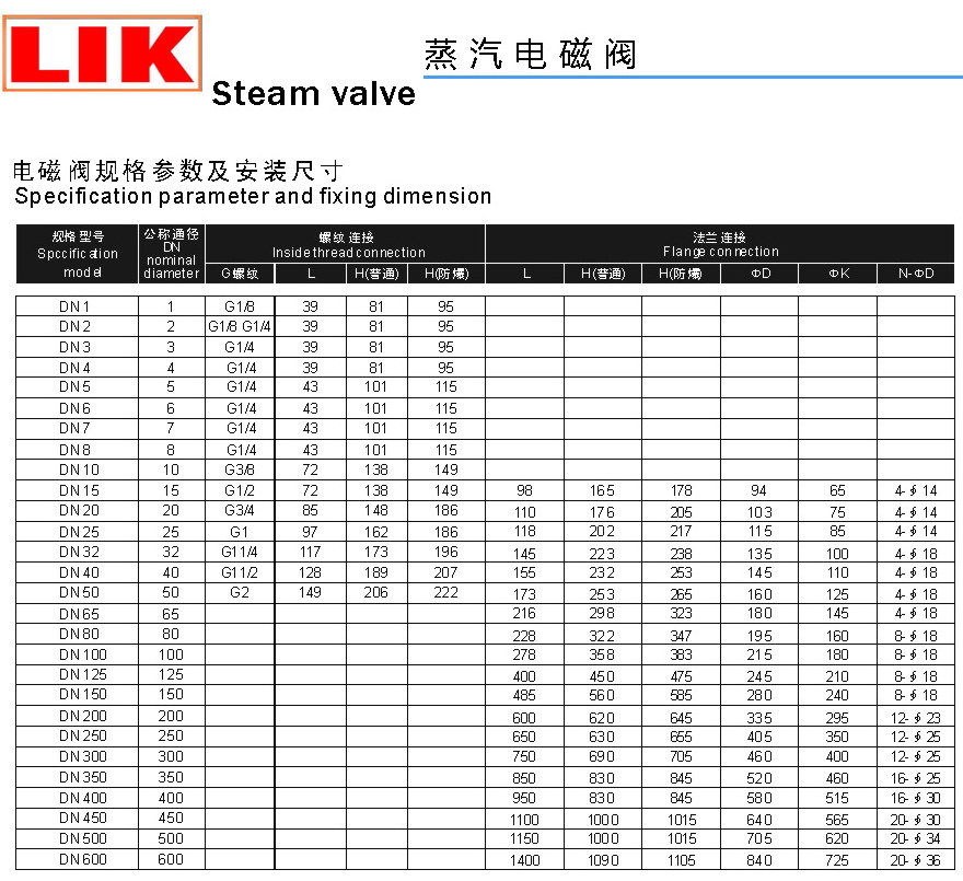 進口蒸汽電磁閥主要技術參數
