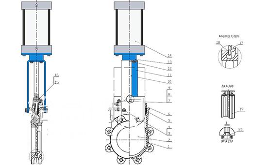 進口氣動刀閘閥產品零部件材質