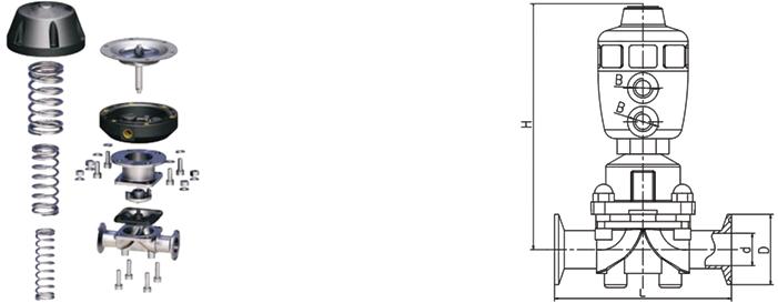 衛生級氣動隔膜閥鋼質部件:不銹鋼304、不銹鋼316L