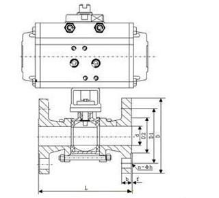 進口氣動三片式法蘭球閥 外形結構圖
