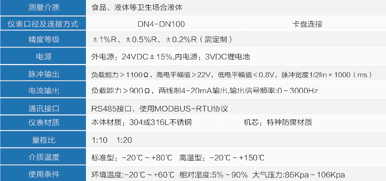 進口衛(wèi)生級渦輪流量計技術(shù)參數(shù)