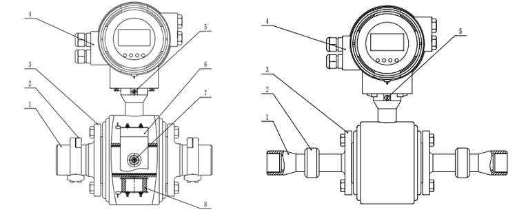4.轉(zhuǎn)換器 5.接地螺釘 6.磁路板 7.電極 8 勵磁線圈