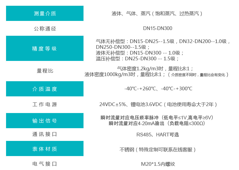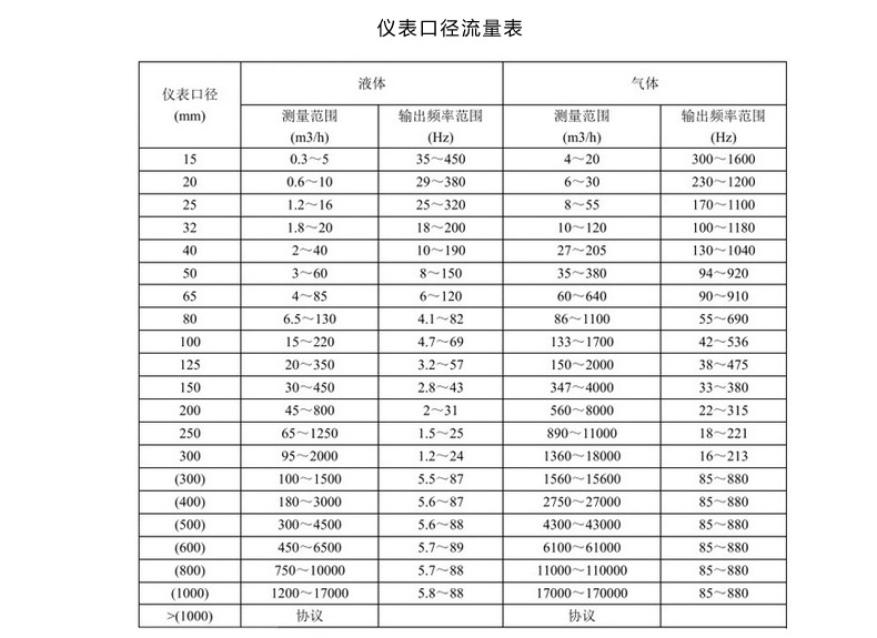進口渦街流量計技術參數