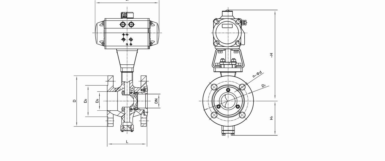 進口氣動對夾式調節球閥結構尺寸