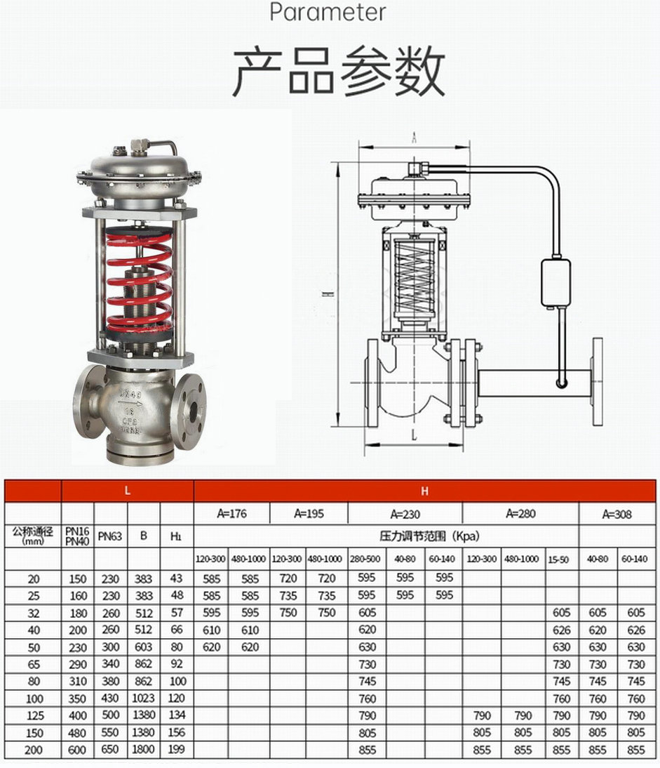 進口自力式不銹鋼調節閥由閥體、執行器和一個設定壓力的彈簧組成。采用內部取壓結構,依靠介質自身的壓力變化來達到自動調節和穩定壓力的目的。適用于蒸汽,弱腐蝕性氣體或低粘度液體的場合,在系統管道中起閥前壓力控制的作用,當閥后壓力升高時,閥門開啟泄壓。