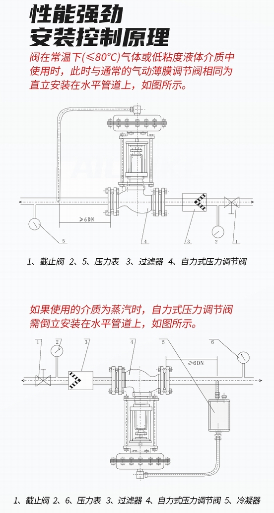 安裝方便:不需要用電和氣等輔助能源,依靠管道內被控介質的自身壓力進行控制,結構簡單、安裝方便、投資小運行成本低。