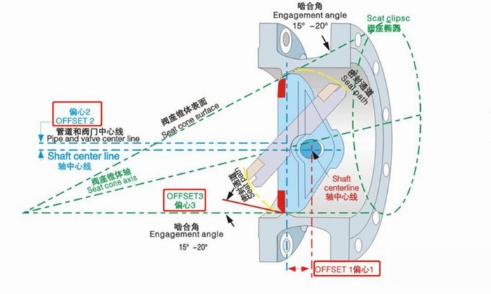 三偏心蝶閥的三個偏心