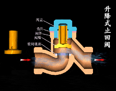 1、當介質由閥體箭頭所示流向進入閥體,介質的壓力作用在閥瓣上產生向上的推力,當介質推力大于閥瓣重力時,閥門打開。當閥后介質壓力作用在閥瓣上的力加上閥瓣自身重力大于閥前壓力作用在閥瓣上的力時,閥門關閉,阻止介質倒流;